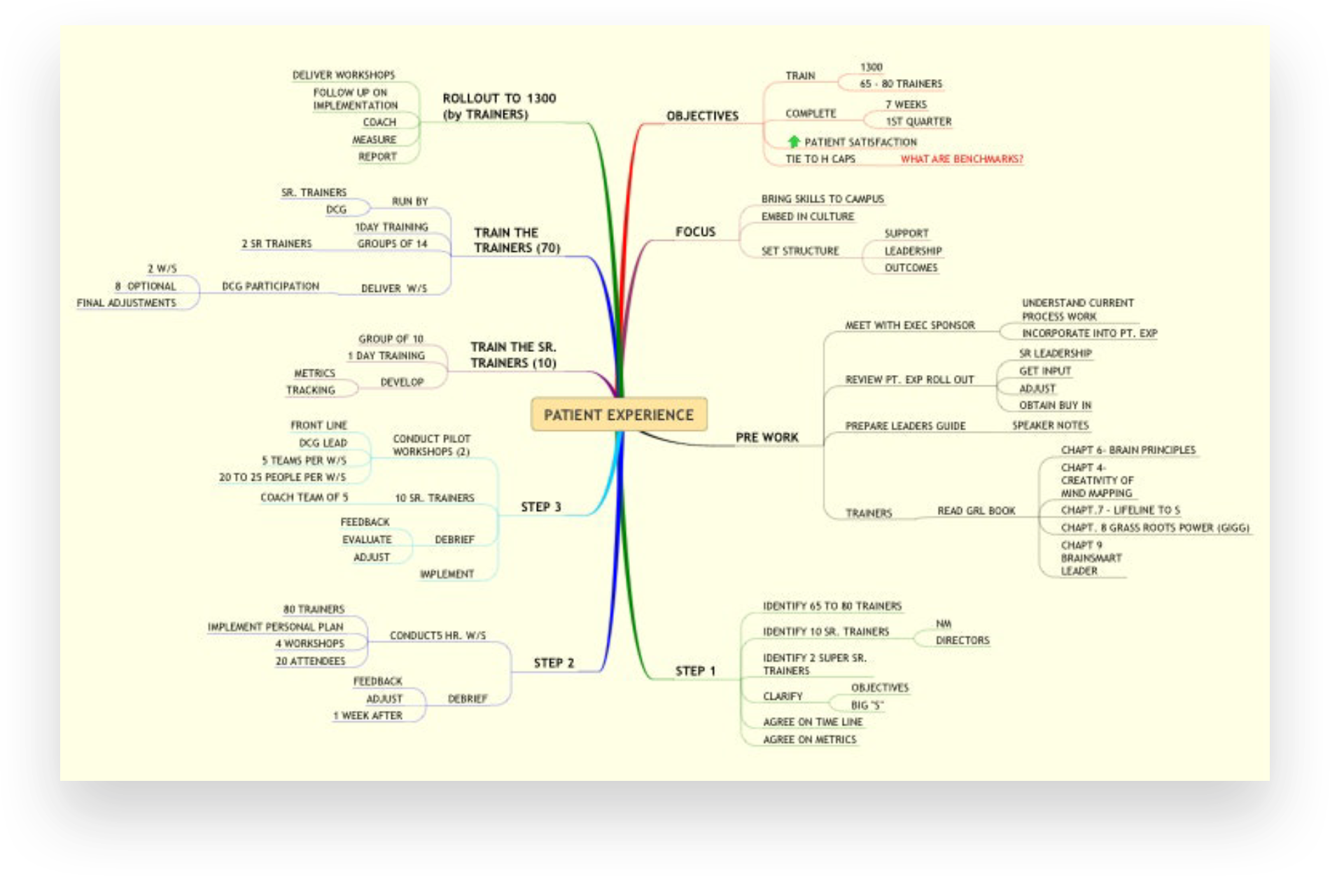 Fortunately we had a couple of senior executives there that had been through mind mapping and we were able to sit down together and out down some of the core elements of what needed to be done on one project plans, and actions plans, that enabled them to then communicate to the regulatory organizations and get their approval on things to execute action plans that can get things to happen.